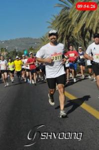 And then we were off. I kept feeling that this is really it, and I'm really on my way to running a marathon. In between delirious and light headed thoughts, I tried sticking to my plan. While preparing in the morning, I scribbled on my arm the splits I was suppose to reach on each 5 km mark. My 'conservative' strategy was to run a 5:30 pace and try finishing under 4:00. But that was for later on. What I really tried doing is catching the 4:00 pacer I thought of sticking to, during the first half of the run anyway. I found it pretty uncomfortable running behind such a crowded pack, and although I was to be very cautious because of the heat, I couldn't help running on and looking for the 3:45 pacer. I discovered there were two of them and felt quite comfortable trailing behind and being mindful of their balloons.