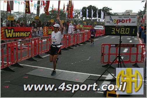הגענו לחצי מרתון ת"א מוכנים ונרגשים, וגם עמדתי בהתחייבות שלי לשבי במהלך החצי שנה מההתחלה עד מרתון ת"א הורדתי 13 ק"ג שזה בערך מה ששבי העלתה :-). המרוץ עצמו היה נחמד בהתחלה, הוזנקנו ב 6 בבוקר בגלל החום, בהתחלה הרצים דיברו ביניהם והייתה אווירה סבבה אחרי 10ק"מ כל אחד התחיל להתמודד עם הקושי והריצה הפכה לשקטה, הרחובות היו דוממים ללא קהל מסביב בגלל השעה המוקדמת, זה היה הבדל חד מהחוויה של 10 ק"מ שרצתי שבועיים קודם במרתון ירושלים שם האווירה הייתה מדהימה. עקב החום קבענו אשר ואני כלל בכל נקודת שתיה ניקח בקבוק ונשתה וזה גם כנראה מה שהציל אותי אחרי עשרה ק"מ נפרדנו ואשר התקדם מהר יותר. המשך הריצה היה קשה מאד לקראת הקילומטר 17 התחלתי להרגיש את כפות הרגלים בוערות, השתדלתי להדחיק את הכאב והמשכתי עד הסיום (2:18). בדיעבד אני יודע שכאבים ברגלים היו סימפטום להתייבשות וזאת למרות ששתיתי המון (היה לי מזל מה שלא היה לאחרים). אחרי המרוץ בקושי יכולתי לדרוך על הרגלים, ובשבת דידתי גאה לבית כנסת (המרוץ היה בשישי). ביום שני התייצבתי לריצה כרגיל, כל כך פחדתי לאבד את הכושר שהשגתי.